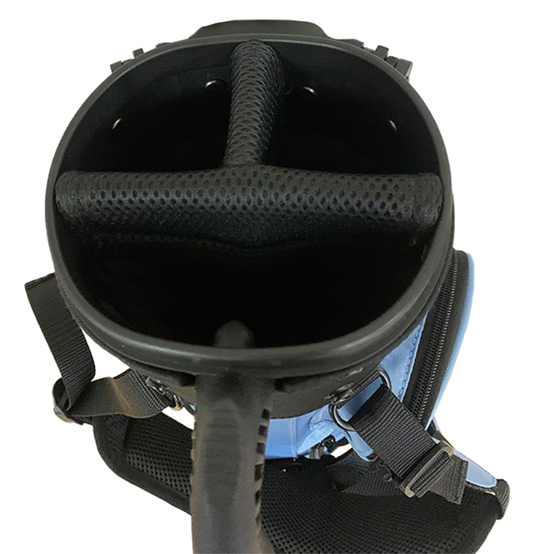 The Blue Waterproof Golf Gun Bag that we provide is a sturdy 150D elastic twill composite fabric that is designed to provide long-lasting protection. It will take your golfing experience to the next level. Featuring three roomy head compartments and a head frame that has been thickened, this bag guarantees that your clubs will stay safe at all times. The breathable cotton mesh lumbar support increases your carrying experience, while the twin shoulder straps, which include high-density sponge cushioning, give comfort while you are transporting the bag.