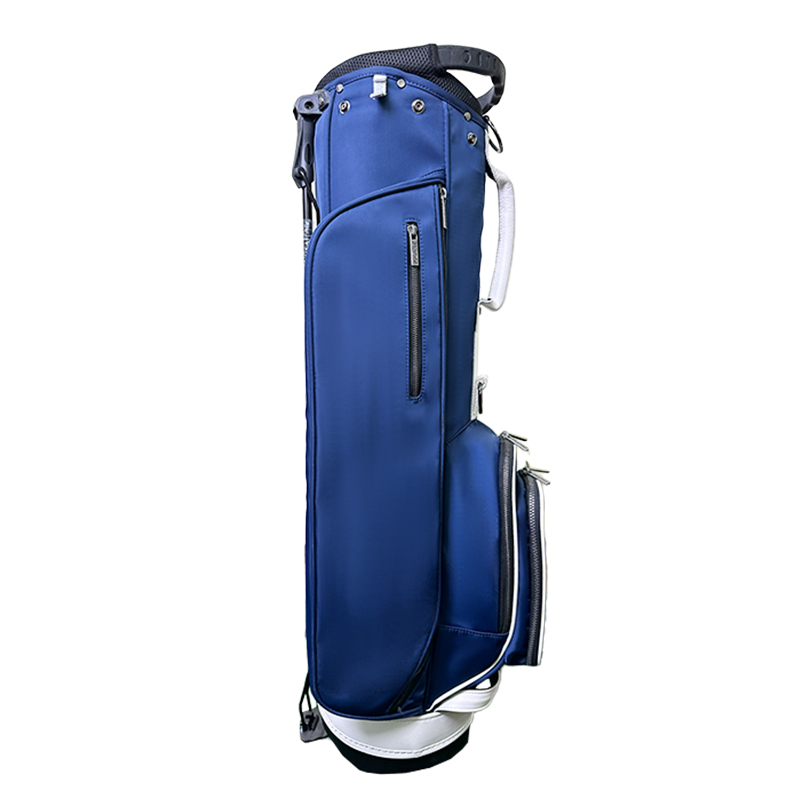 Enhance your golfing experience with our Pure Blue Golf Stand Bag, crafted for both aesthetics and practicality. Constructed from premium nylon polyester, this stand bag provides outstanding durability and wear resistance. Featuring five expansive club pockets, it offers sufficient storage for all your golfing necessities. The revolutionary design has a breathable cotton mesh lumbar support, guaranteeing comfort during your rounds. Personalize your bag with our distinctive all-blue accessories, including club compartments and legs, while benefiting from the extra convenience of a rain cover and umbrella holder. This stand bag fulfills functional requirements while also allowing for personal flair via customisation options.