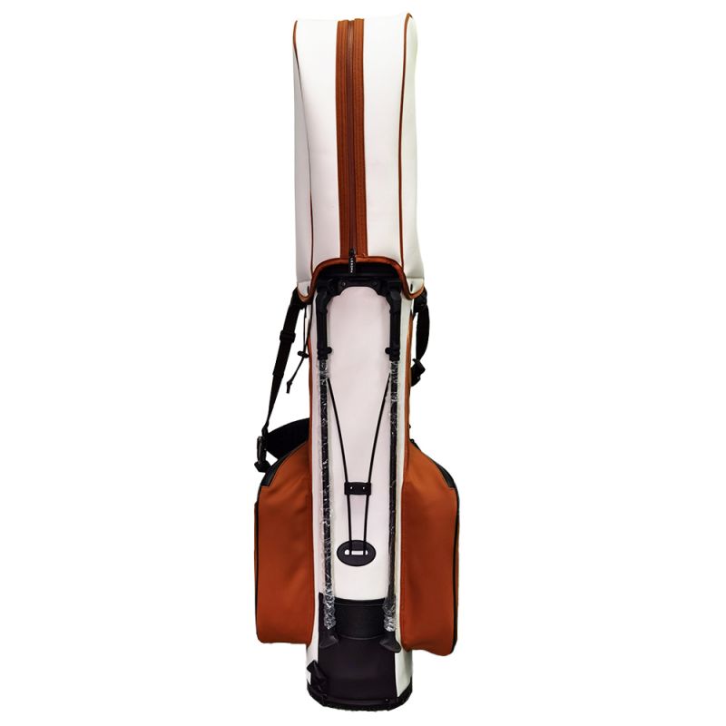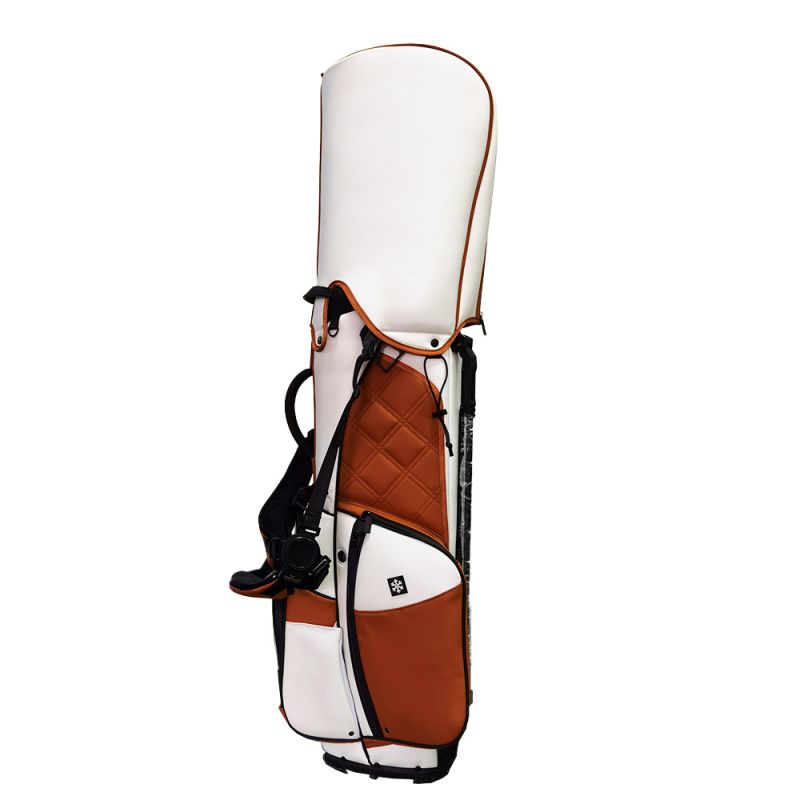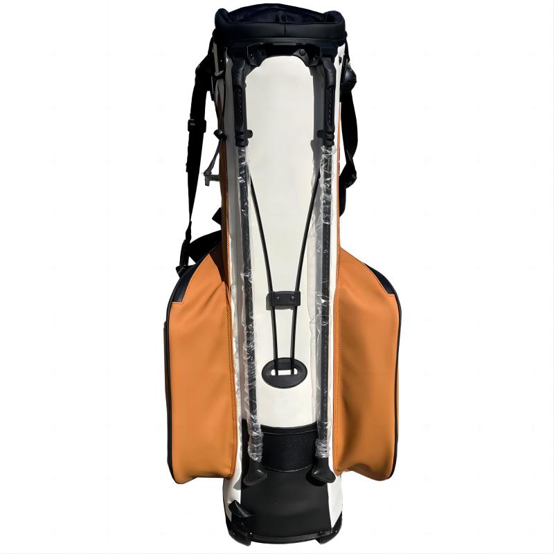 Premium PU Waterproof Leather: This brown and white golf stand bag is crafted from premium PU waterproof leather, ensuring that your equipment is protected from rain and precipitation while maintaining a fashionable appearance.