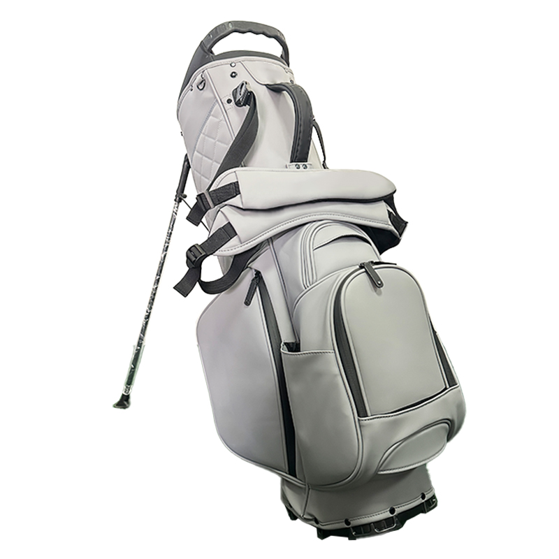 Experience the ideal fusion of fashion and use with our Light Gray Golf Stand Bag. This stand bag is made from high-quality PU leather and is completely waterproof, so your gear will stay dry no matter what the weather is like. The six large head sections will keep your clubs safe and in order, and the two shoulder straps will make your rounds more comfortable. The design of the versatile pockets keeps your basics close at hand, and the magnetic pockets make it easy to get to things you use often. With the built-in rain cover and umbrella holder, you’ll always be ready for any weather. Enjoy the ability to personalize this stand bag even more to make it really unique.