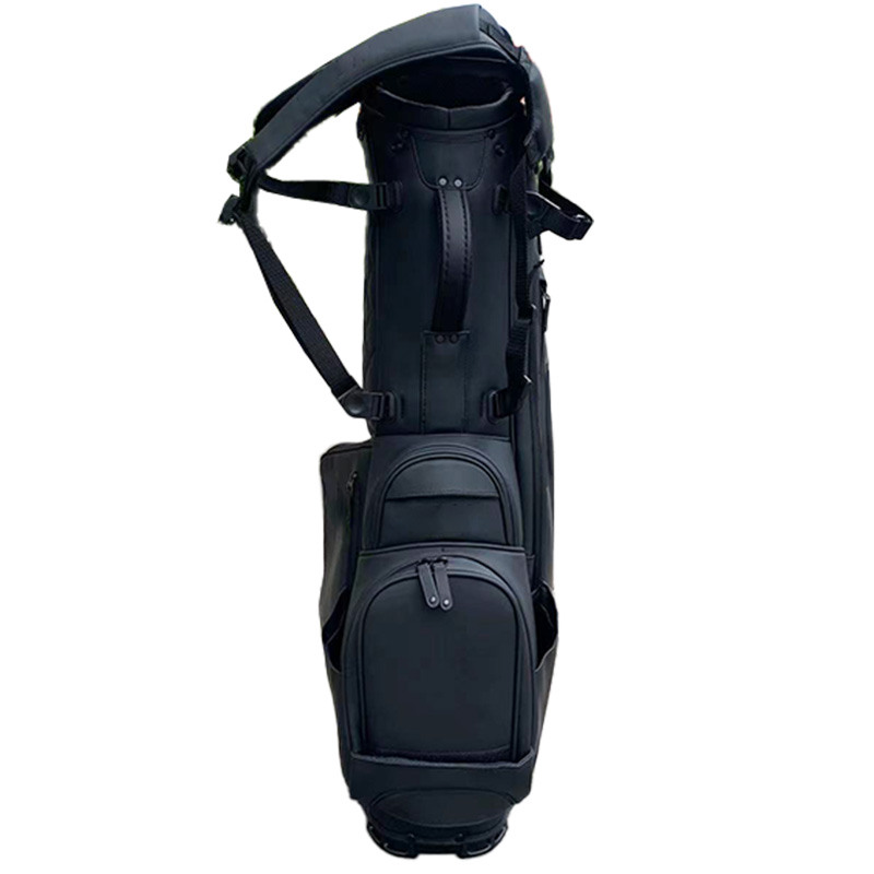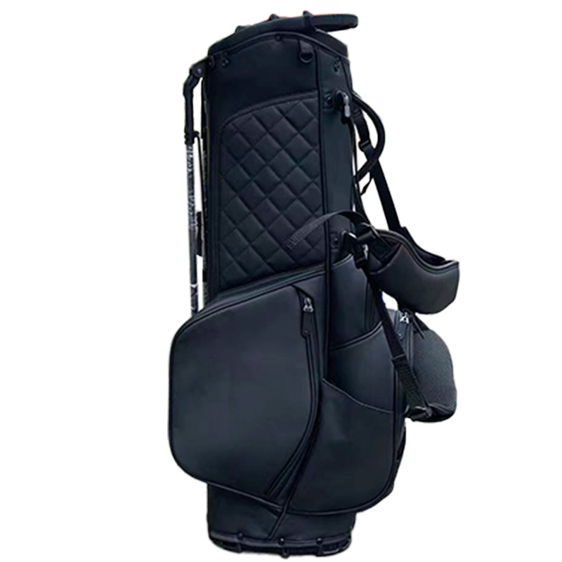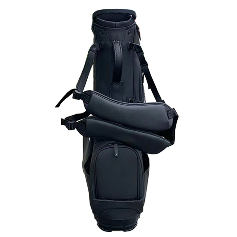 Step into the lap of luxury with our Waterproof Golf Stand Bag in a sleek black design. This bag will keep your belongings dry in any climate thanks to its high-quality PU waterproof leather construction and elegant design. Its robust and stylish black appearance makes it an ideal golfing companion. Enjoy a snug fit all game long thanks to the plush quilted cushioning and two adjustable straps. Even on hot rounds, you’ll stay cool thanks to the high-breathability sandwich mesh’s improved ventilation. Extras like a magnetically closed ball pocket, waterproof zippers, and a strong metal towel ring provide unparalleled organization and comfort. Amp up your game with a stylish but functional golf bag that you can customize to show off your own sense of style.