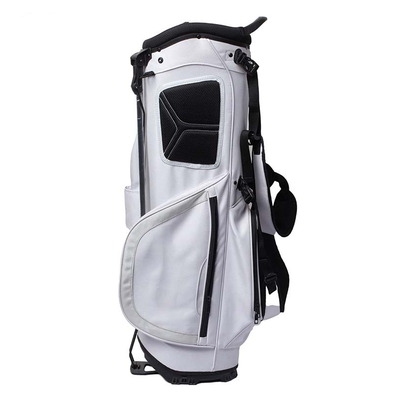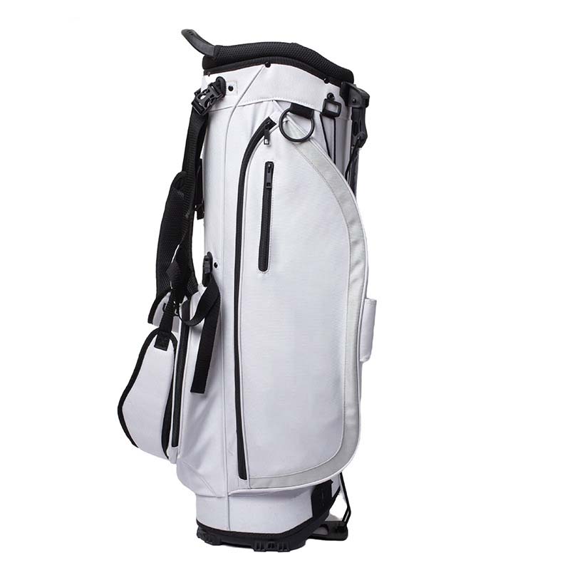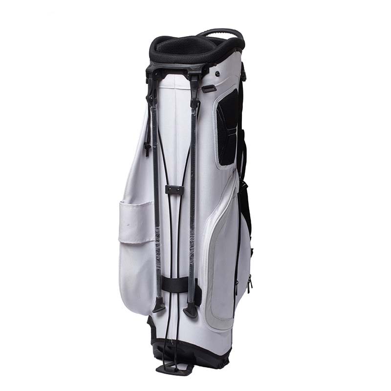 Our 5-Compartment White Golf Stand Bag is the ideal combination of design and practicality. This stand bag’s high-quality nylon construction makes it durable and abrasion-resistant, making it a great golf companion. It organizes and makes your golf gear accessible with five large club sections. Dual shoulder straps make carrying easy, and breathable cotton mesh lumbar support improves course performance. Stylishly designed, this bag has an umbrella holder and a useful rain cover for those days when the weather is unexpected. It also has carbon fiber support legs for enhanced stability. So you’re ready for everything the game throws at you, the versatile pocket holds all your equipment. Plus, you may customize your bag to match your style.