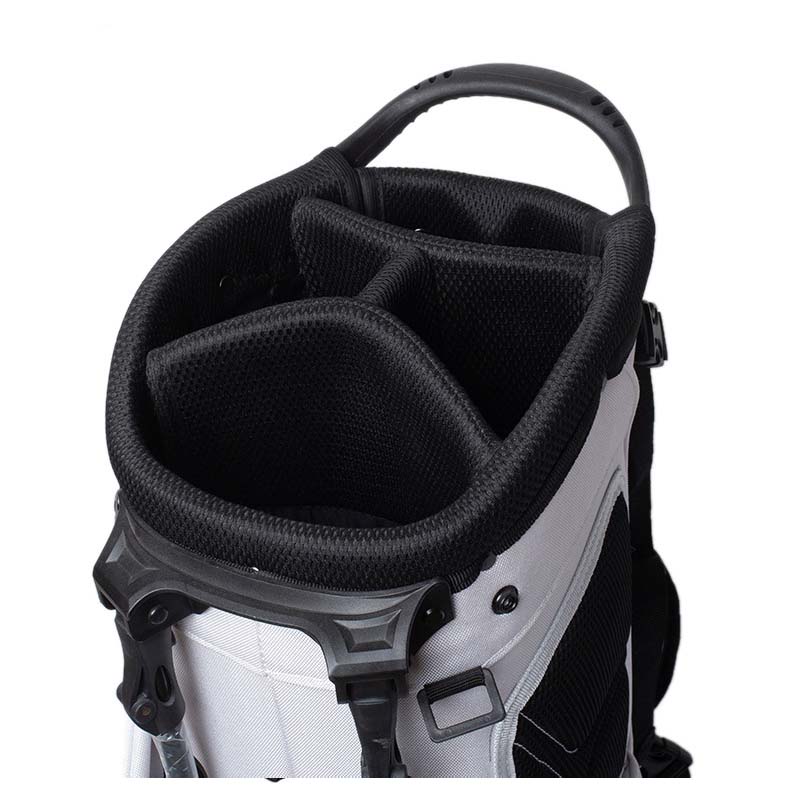 Breathable Cotton Mesh Lumbar Support: This stand bag’s cotton mesh lumbar support panel improves comfort and ventilation. It supports your lower back whilst swinging and walking the course.